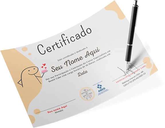 Além de habilidades incríveis, ganhe o reconhecimento que merece! Ao final do curso, receba seu Certificado de “Especialista em Bentô Cake”, um verdadeiro selo de maestria para elevar seu perfil profissional no mundo da confeitaria!